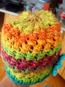 Thanks Denise…I'm totally lovin' it myself. Would it be weird for a grown-up to wear? Hee hee. Especially with the awesome rainbow yarn!