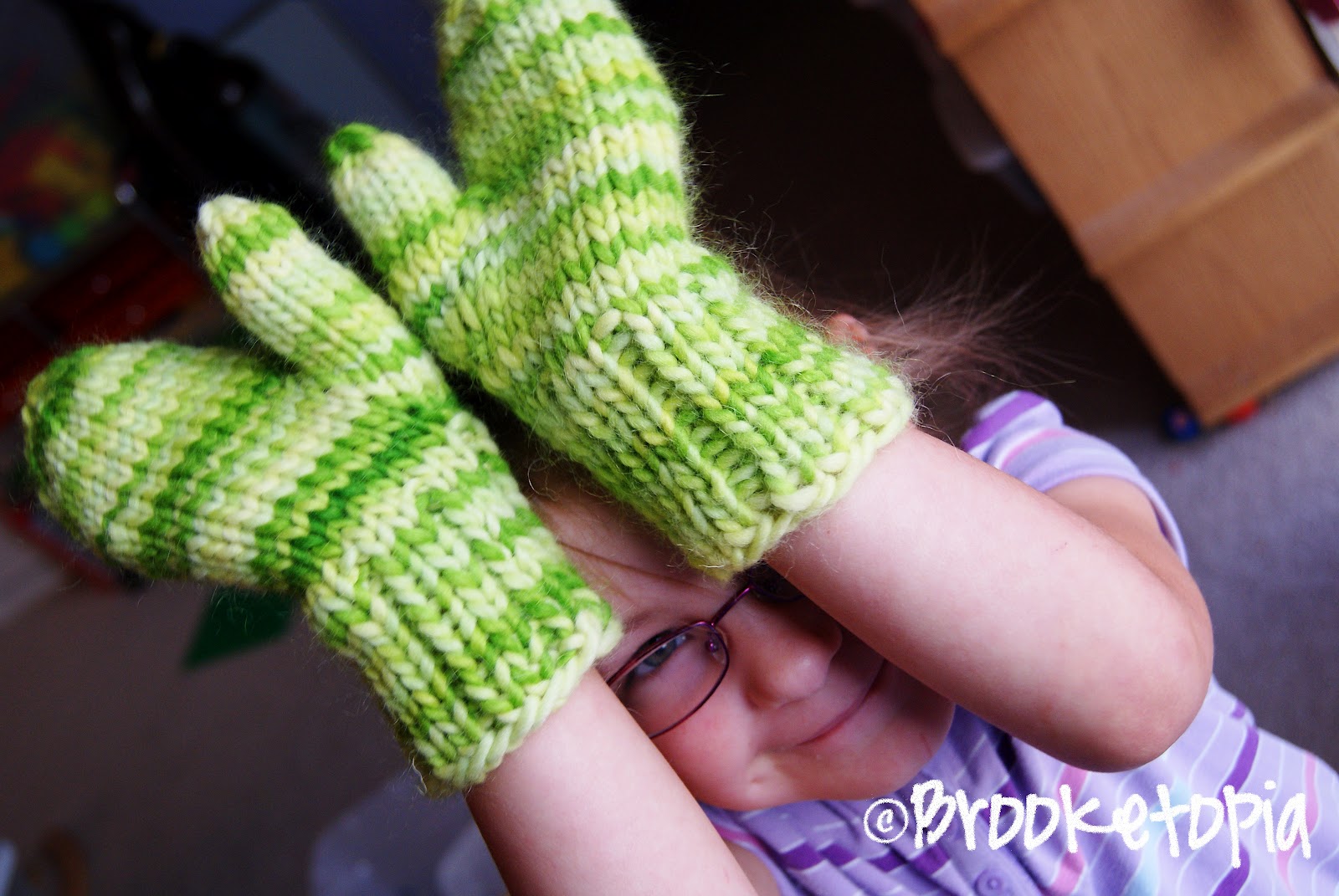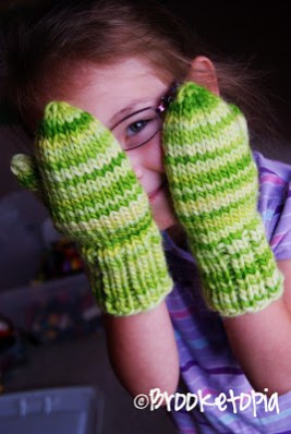 The original intention was to make Penguin a new hat, but the girl owns numerous hats AND she is bumping up into number of Bluebird’s outgrown hats this year as well. Penguin doesn’t need another hat. I asked her what she did want and she suggested mittens.