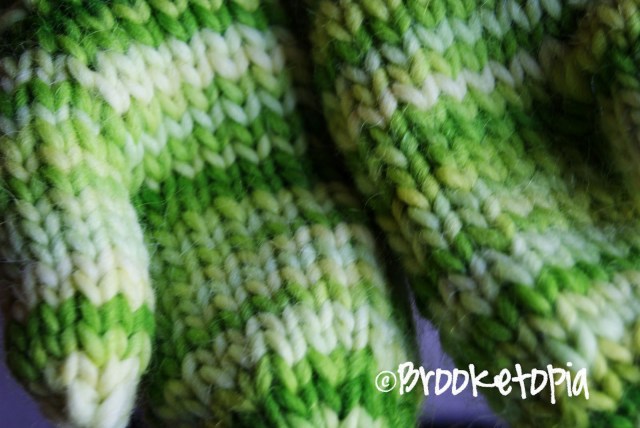 I complained last week about how everything I was working on was pink or purple, and realized that the exact opposite of said colors was yellow-green. As luck would have it, I had purchased a skein of very yellow-green yarn only a few weeks ago, and figured it was a great time make use of its much-desired colorway.