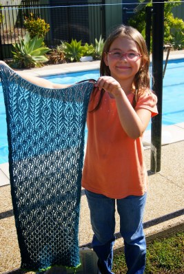 - Peacock Stole for my granny, which I promised to her four years ago: Over halfway done! I’m hoping it will be done by the end of March this year. This is the other beast…besides a couple of pairs of handknit socks, I only worked on this shawl and the Star Spangled Diamonds quilt for my daughter while we were in Australia. Love them, but…yeah…looking forward to being done with them!