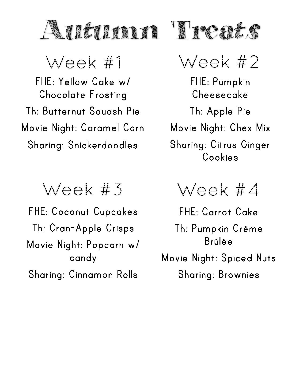 So, yes, a month’s worth of meals…and then I repeat it TWICE so that it’s actually three months’ worth of meals. Favorite foods go into the “Week #1” slot because a quarter is actually 13 weeks long, so that week gets four times at bat. I like my autumn meal plan to end with the week of Thanksgiving, so that I can start my winter meal plan with the Christmas season, so that means this year I’ll morph into my autumn cooking on Monday, August 31st.