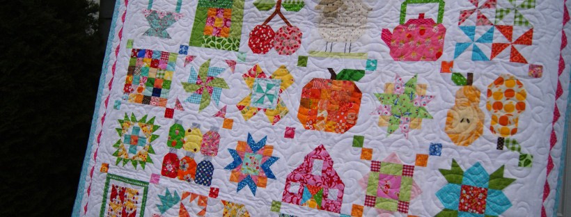 Knowing what I know now about quilting, I was so not ready for this quilt…and yet, it worked out. There’s a couple of blocks in there that are quite bad (namely, the House and the Canning Jars), but I learned the necessary lessons from them and didn’t make those mistakes again, so the rest of the blocks are fine. When I come across those particular blocks while I’m sitting under it, I smile and pat them, remembering how frustrated I was with them—and then I’m grateful I pushed on despite my imperfect results.