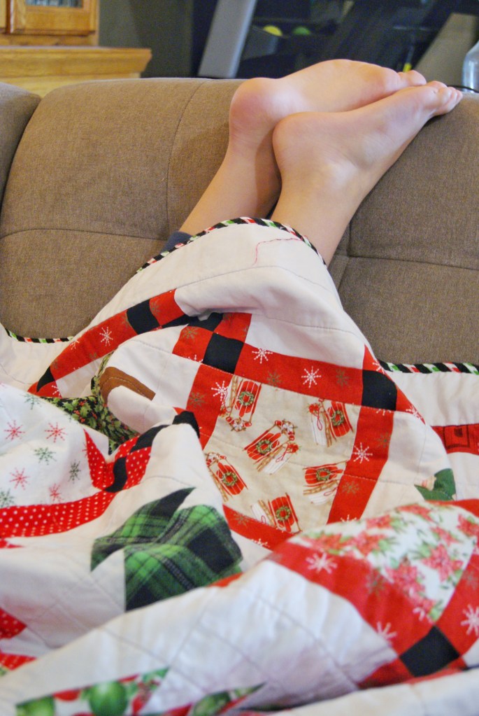 And it’s a Christmas quilt! For my kid! And he loves it! And it’s for Christmas! I love Christmas quilts! I finished a Christmas thing!