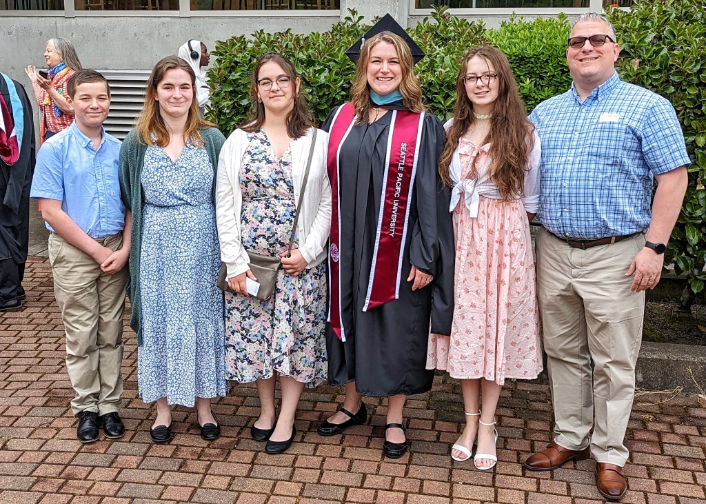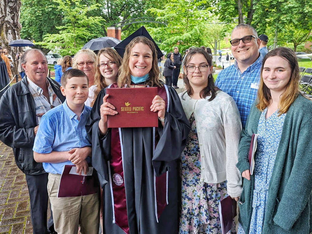 But yeah, MASTER’S DEGREE, baby! Woo hoo! But not woo hoo for the outdoor commencement ceremony in SEATTLE that rained all over my parade. Graduation pictures will definitely NOT be this year’s Christmas card photo! *sigh* I try so hard, y’all, I really do!