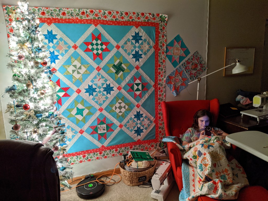 Smitten EPP Quilt: I finished the last full block and laid it out in the living room to figure out placement and what colors I’ll make all the extra little bits. There’s still a lot of work to be done on this quilt, but I’m really enjoying the process.