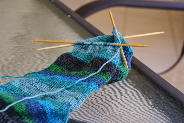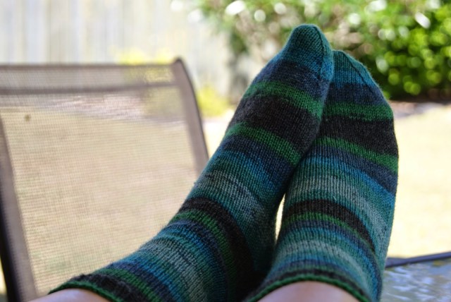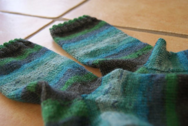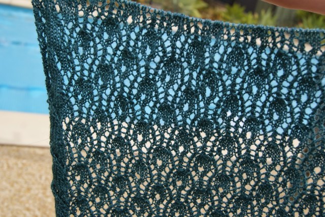 I managed to make some fair progress on two big projects, the Peacock Feathers Stole and the Star Spangled Diamonds Quilt, and knit up a pair of socks as well.