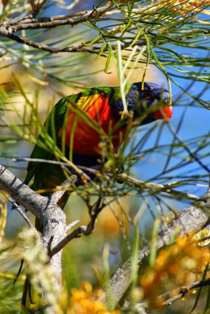 These are my favorites, even when they’re squawking their little heads off at each other. Michael tells me that there’s “Lorikeet Trees” in various parts of the city where big flocks of them go to roost at night and you can’t hear another person yelling at you right next to you because the birds are so ridiculously loud. I’m glad we don’t have that problem, just the occasional squabble every couple of hours. It’s worth it though, to look at those brilliant feathers. So pretty.