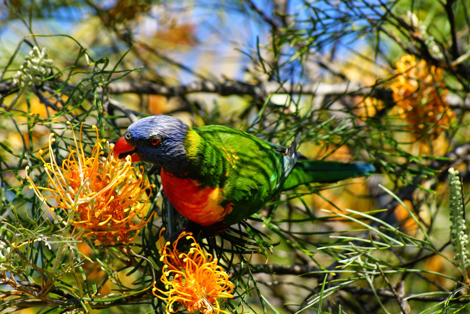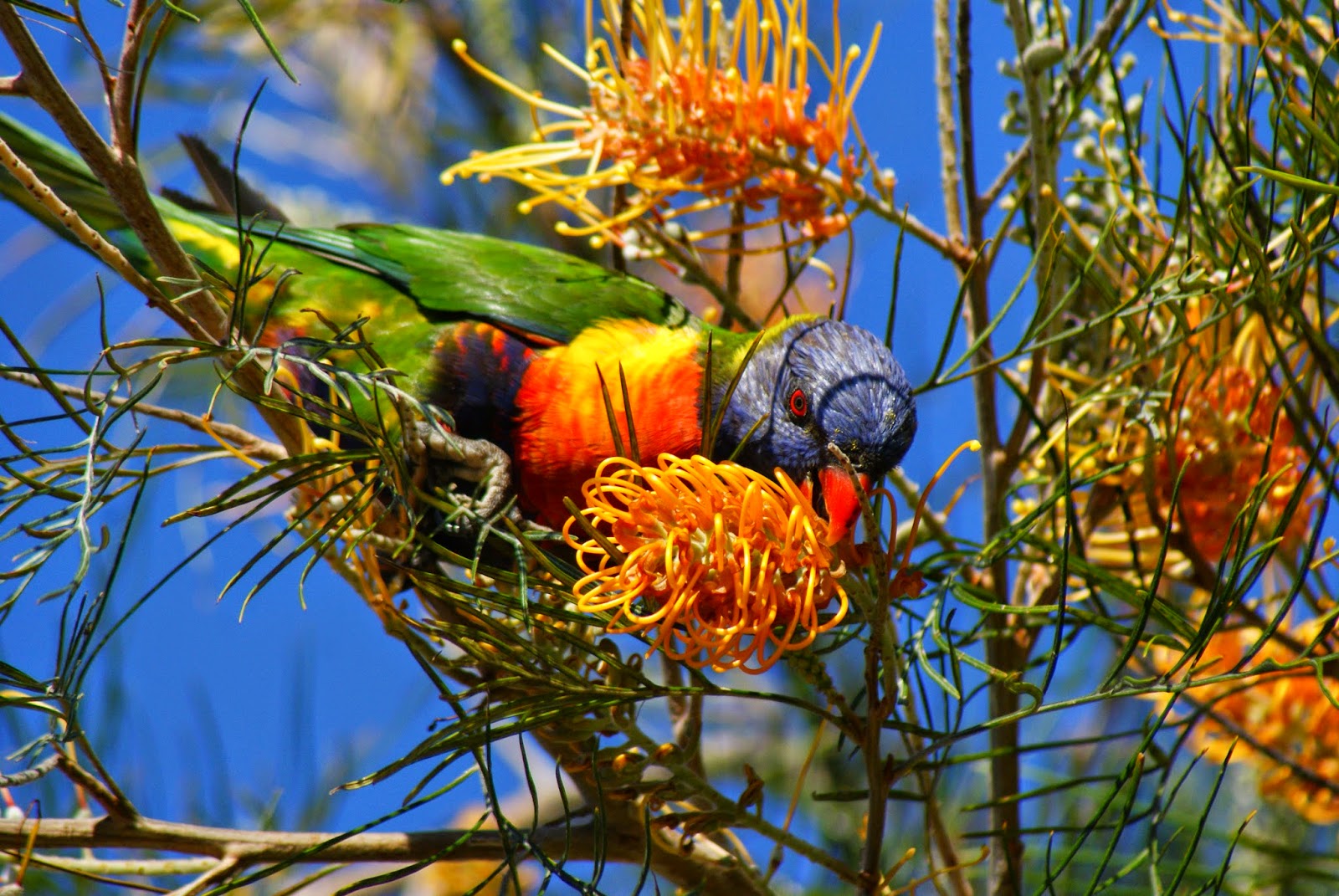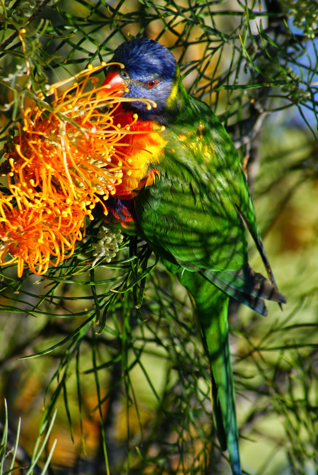 These are my favorites, even when they’re squawking their little heads off at each other. Michael tells me that there’s “Lorikeet Trees” in various parts of the city where big flocks of them go to roost at night and you can’t hear another person yelling at you right next to you because the birds are so ridiculously loud. I’m glad we don’t have that problem, just the occasional squabble every couple of hours. It’s worth it though, to look at those brilliant feathers. So pretty.