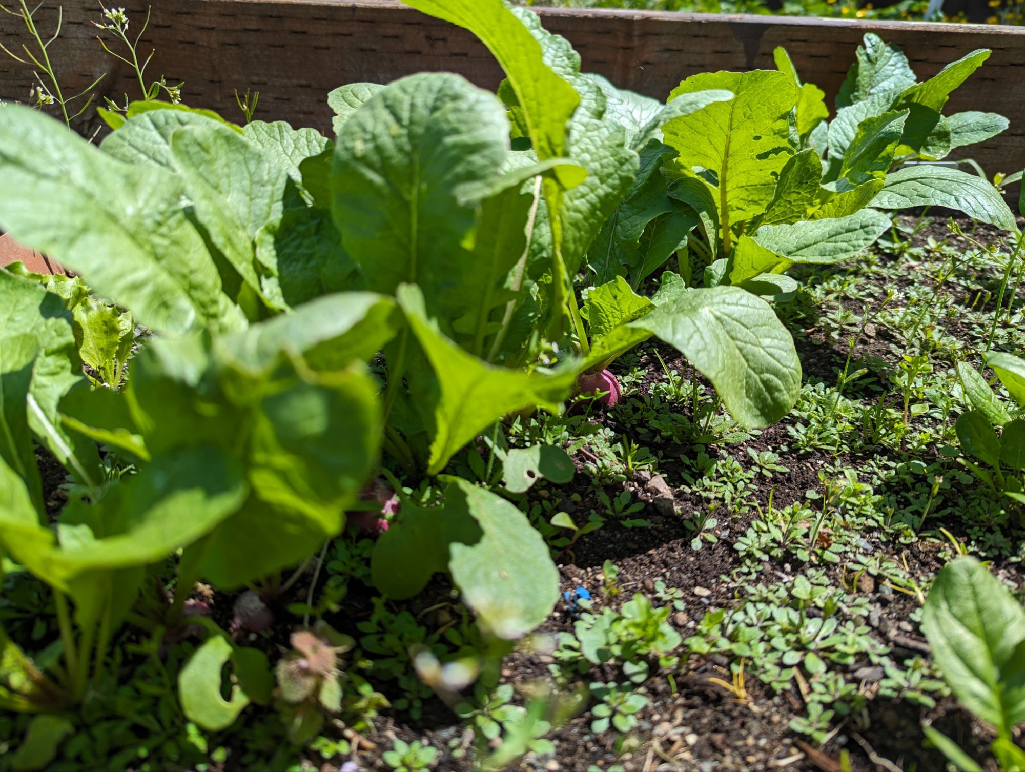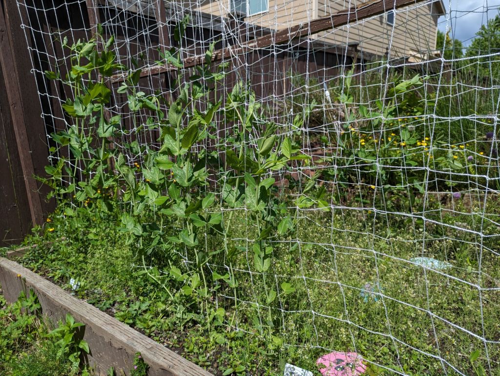 It’s so fun to see things coming up and blooming! The peas are doing well, the nasturtiums are definitely coming along, and the radishes and lettuces are starting to gain some steam. The carrots are slow starting and slugs keep getting my sunflower sprouts, so I’m keeping an eye on those crops.