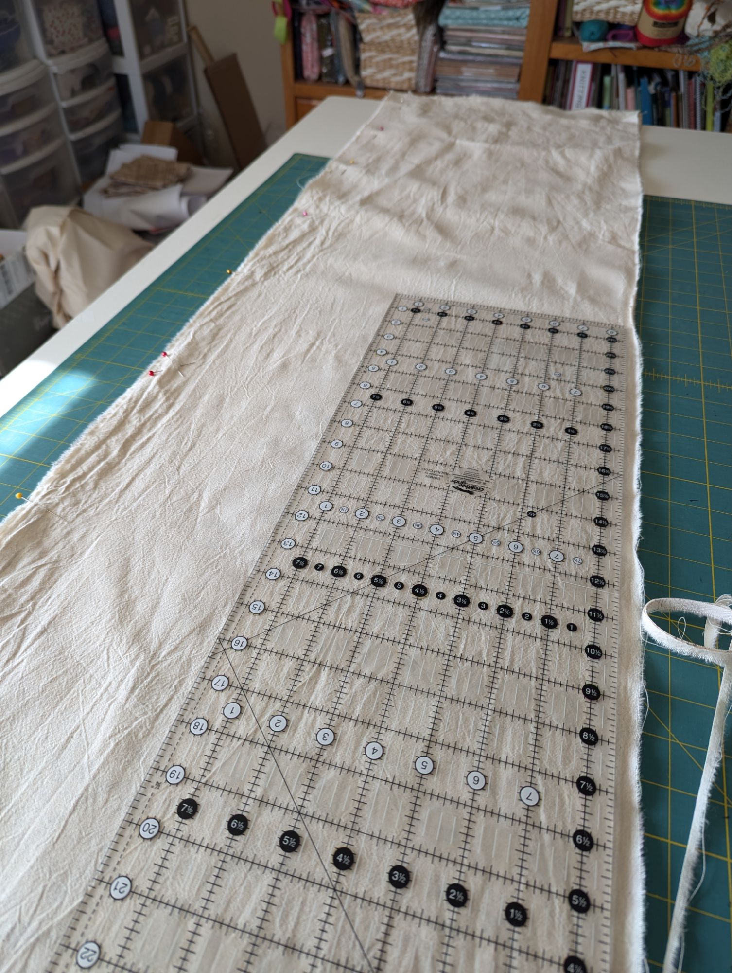 I am going to try my hardest to get some actual sewing done this week. The fabric for the band fundraiser table runners is here and I’ve pre-washed it all and am in the middle of cutting it to size. I’m a little optimistic that I might get these done quickly.