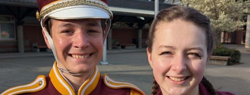 I don’t like to publish where my kids are going to be ahead of time because that seems unsafe, so another thing we had on our plates this past week was the Rhododendron Parade. It’s quite the drive from where we are and we invite our middle school’s eighth graders to also participate so they can see what all the fun is about in the hopes that they’ll continue with band in high school, which meant, for the only time ever, Nathaniel marched in a parade in the same band as Renaissance.