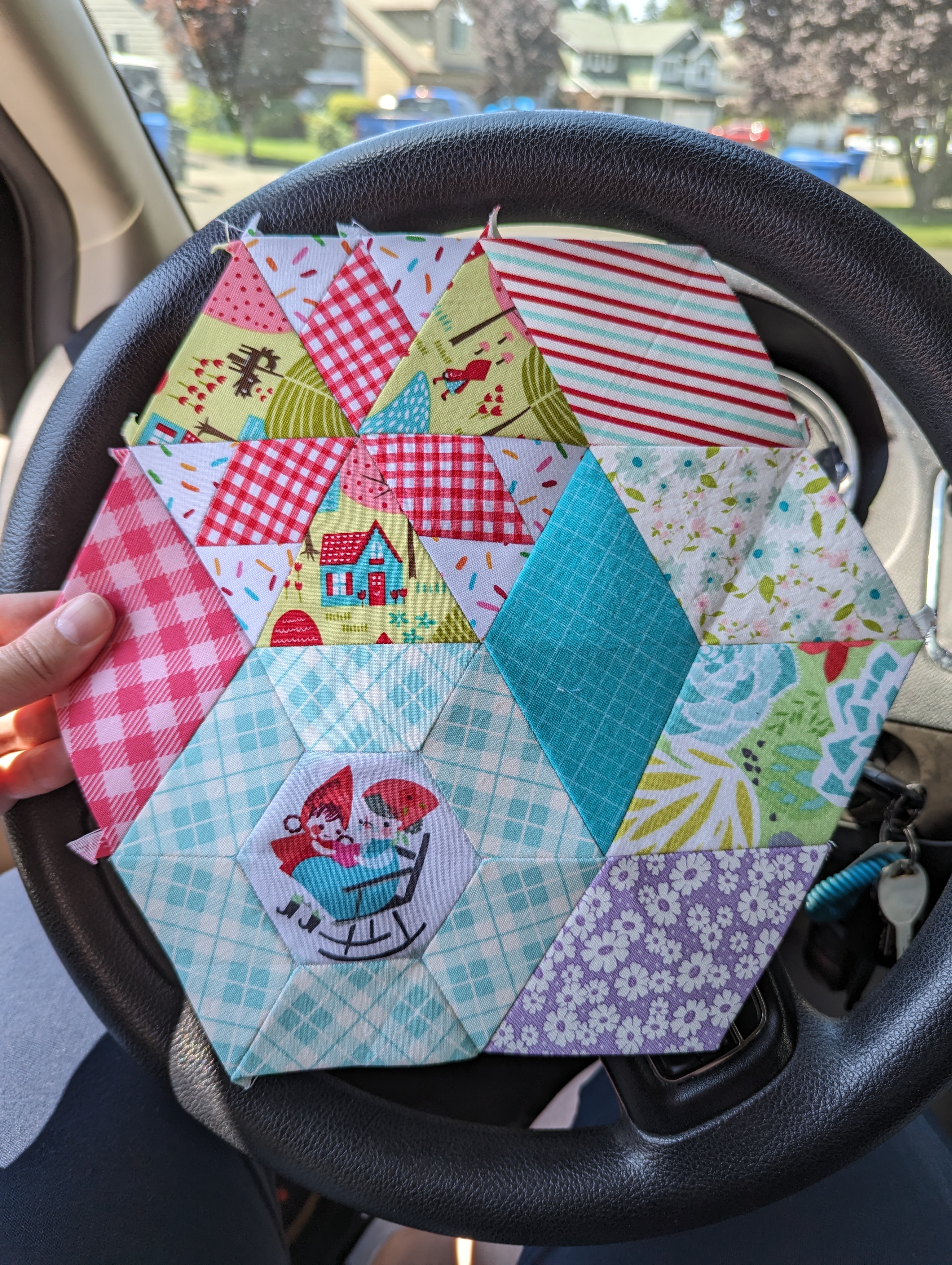 But I like to keep track of progress, so this guy is at 12 blocks out of 26, which is ~46%, and we’ll subtract 5% from that to account for the border that will need to be stitched at the end, so 41% done.