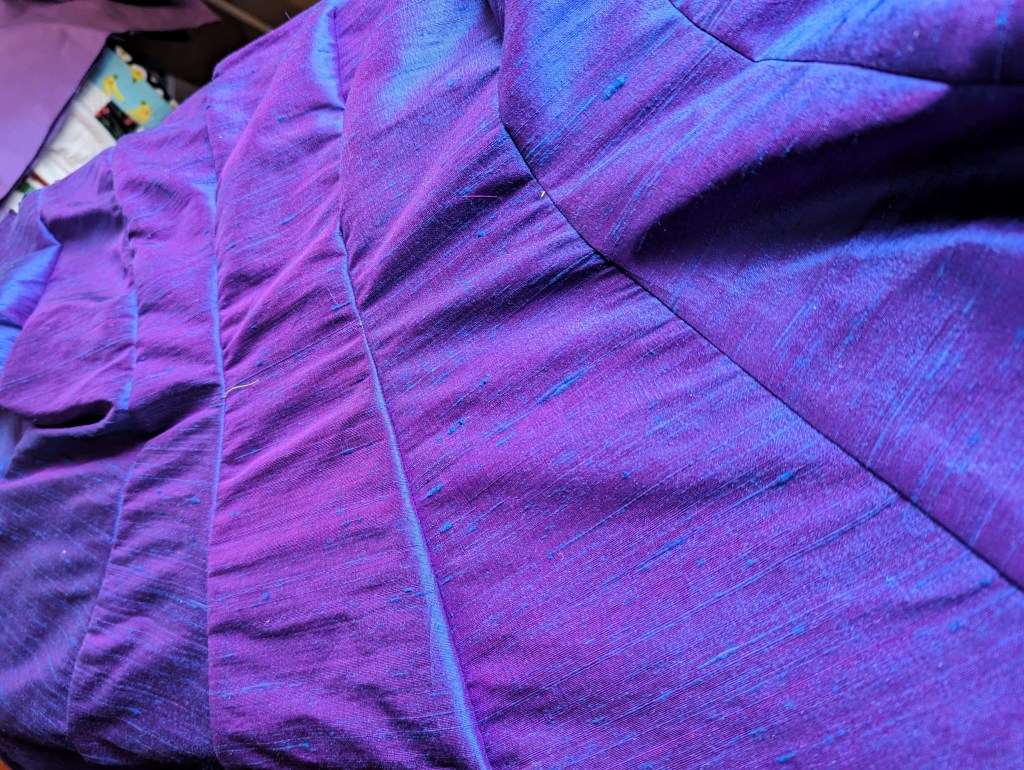 Another piece of advice that I had forgotten until Monday was that you need to use a pressing cloth on silk. That wasn’t important until this morning when I actually started pressing stuff, but I had forgotten about it and mention it in case it’s helpful to anyone else.