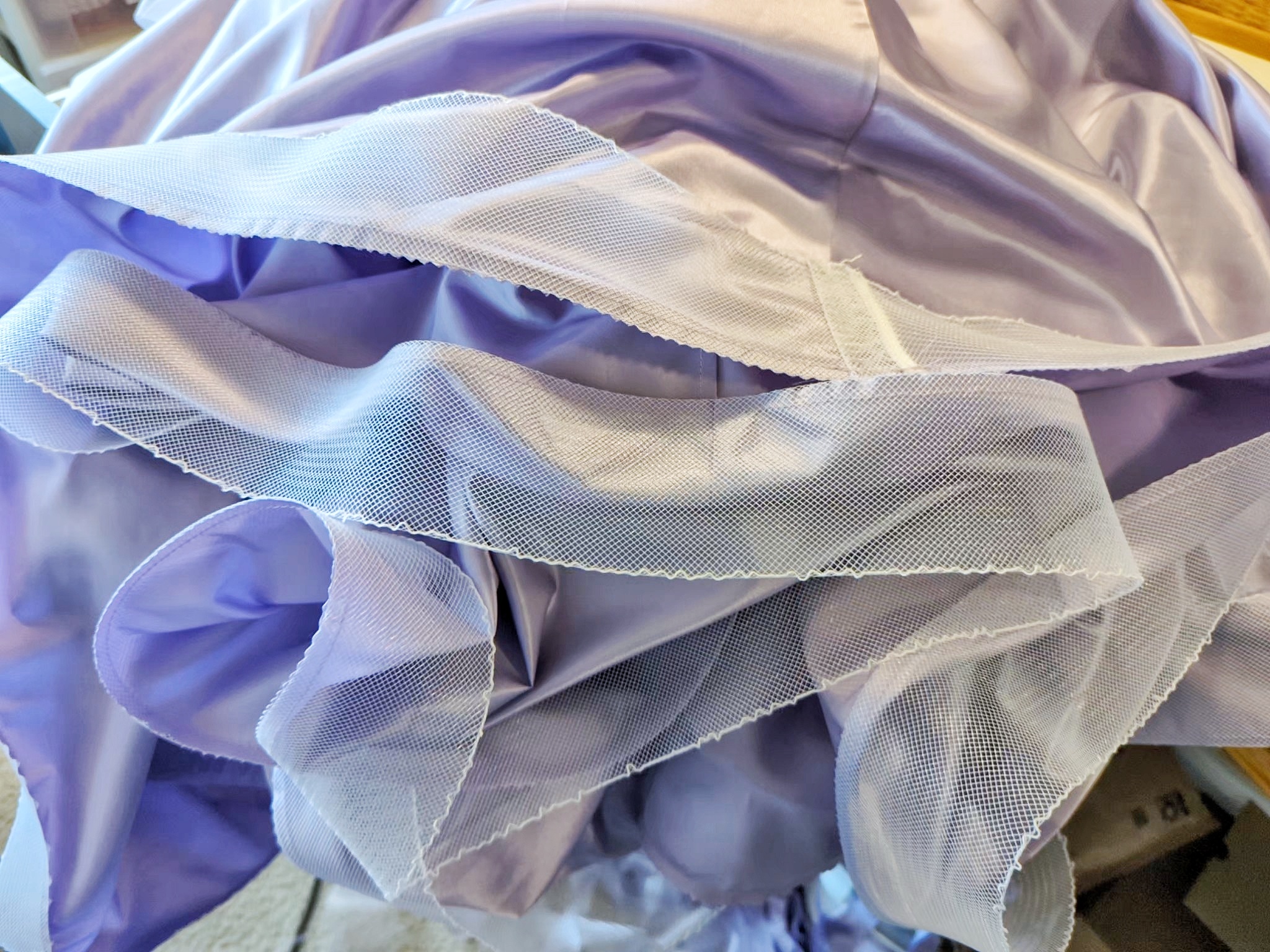 She’s picked out a lavender satin taffeta and a lilac organza from JoAnn Fabric that we picked up last weekend, and she’s hoping to add some sort of trim or applique to it. I think this particular dress will need the addition of some petticoats/crinolines to bring it to its full potential, so I’ve already ordered two to be safe. I was thinking I’d make them myself, but my timetable is super tight and I’d rather not stress about something like that.