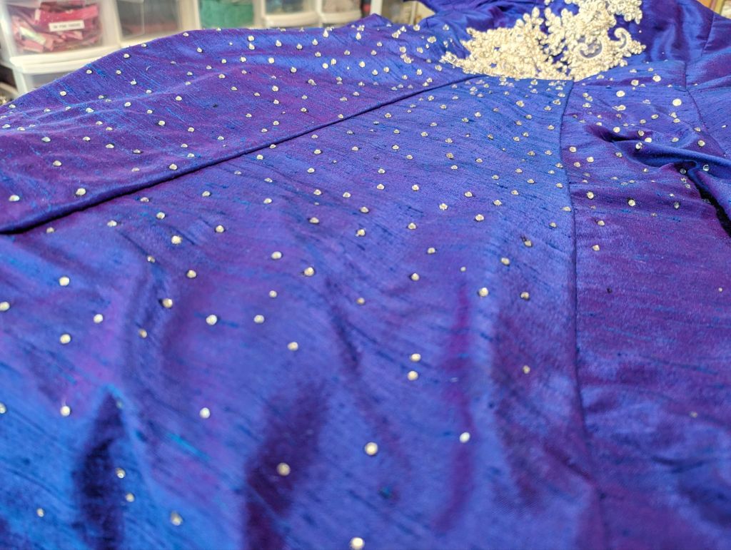 It absolutely cracks me up that those last two pictures are of the same area of the dress! How the light is hitting the fabric changes the color astronomically, I love it so much!