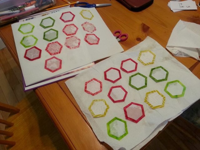 I decided to sew this all up with the Hexie Stripes pattern by Suzy Quilts, adding two borders of Jot Dot to increase its size. I’d not used a quilting ruler that wasn’t squared-edged before, and I ended up slicing off the tip of one of my fingers just a few cuts into using my awesome new triangle ruler! Goodness. It wasn’t a horrific injury, but it did take about a week before I could do anything without aggravating the gauze-wrapped injury. I re-embarked upon the quilt’s construction and made slow, but steady, progress just as news broke of a confirmed case of COVID-19 in Washington State. I upped my efforts just in case we ended up with some sort of government lockdown order, and got it into the mail to the quilter as fast as I could.