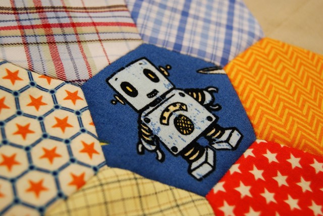 - Storybook Hexagon Label–I always space the quilt label. Do this immediately before I decide it’s not important anymore. (I’m a historian at heart, and think there is significant historical importance in regards to labeling quilts.) The main hold-up on this is buying a fabric pen for writing the information on the label.