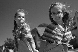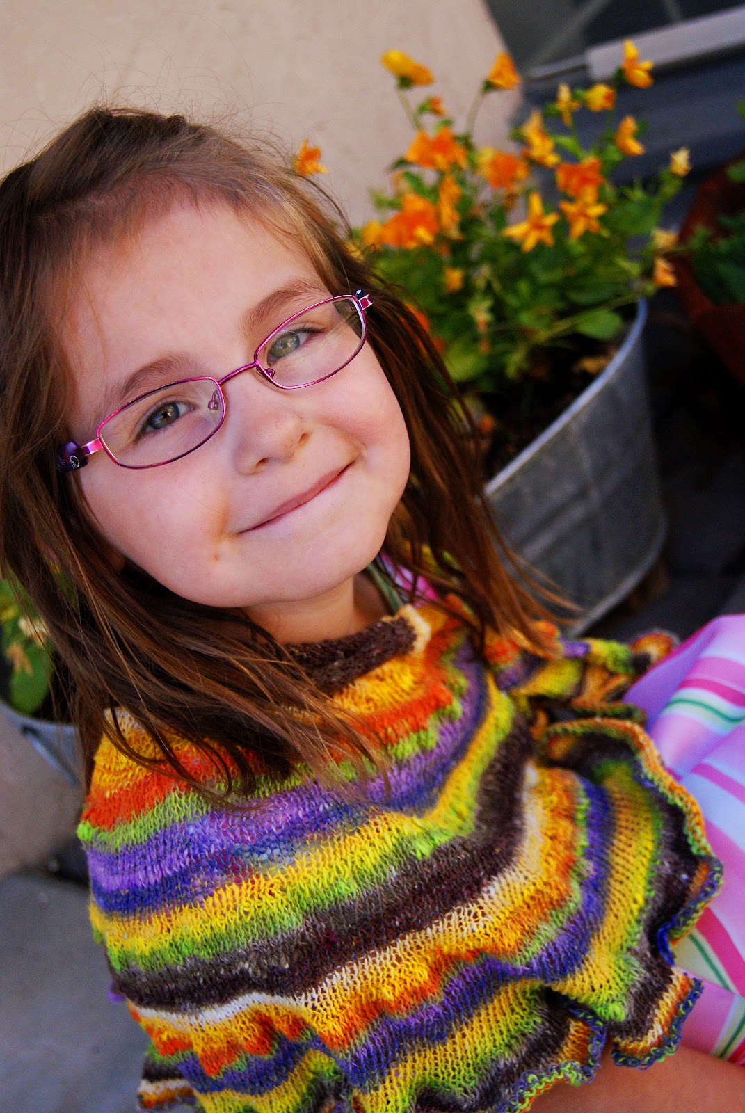 June: I made a big, swirly skirt for Rachel because she was suddenly obsessed with big, swirly skirts. I also started working on my Violet Chambray M6696. Very busy in the garden, and we started doing a lot of cooking from scratch, which took up a lot of our time. I also kept putting in time on the Peacock Feathers Stole.