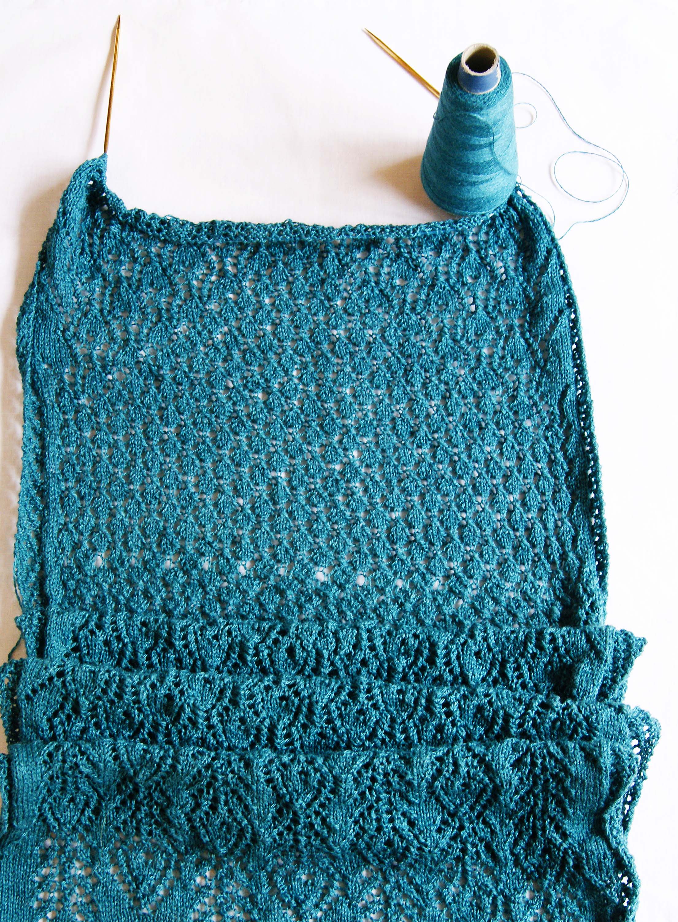 I picked the Peacock Feathers Stole back up and started working a few rows a day.