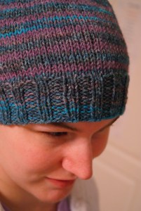 Modifications: The yarn skeins don’t stop and end in the same place, stripe-wise, so I did my best to match up the stripes, but had to split my second skein to start in the same place as the first skein, which meant I had to join in the last bit of yarn near the toe so it stripes a little weird in the second sock. Fortunately, no one will see it because it’ll be hidden by his shoes when he’s wearing them.